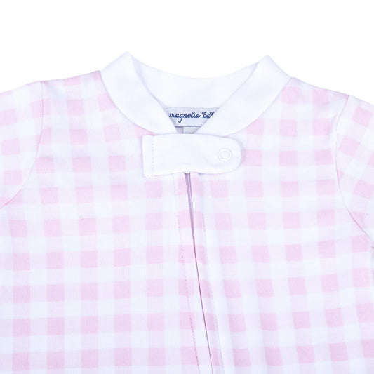 Sold outZipper Footie | Pink Check
