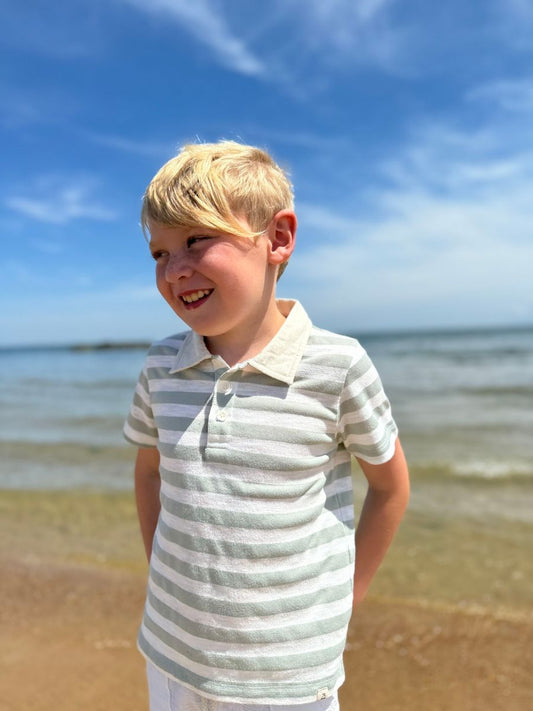 Anchor Polo | Grey/White Striped Slub