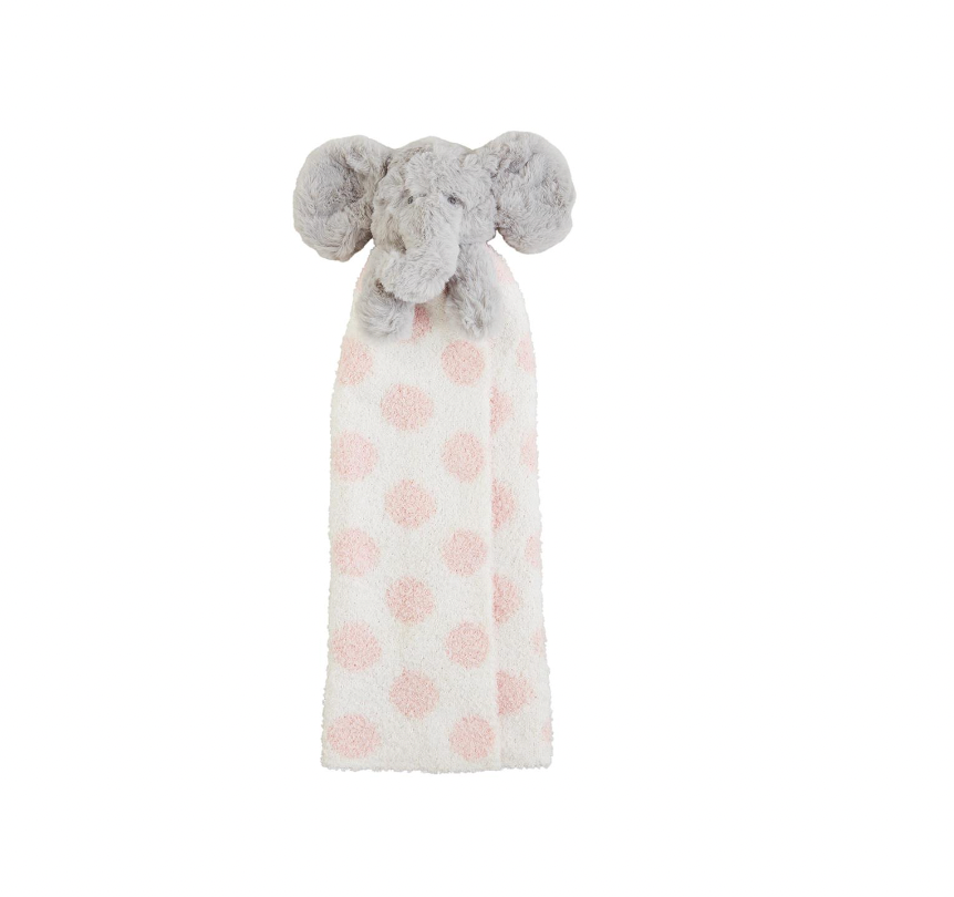 Embroidered faux fur animal with chenille lovey skirt features musical lullaby sound chip.