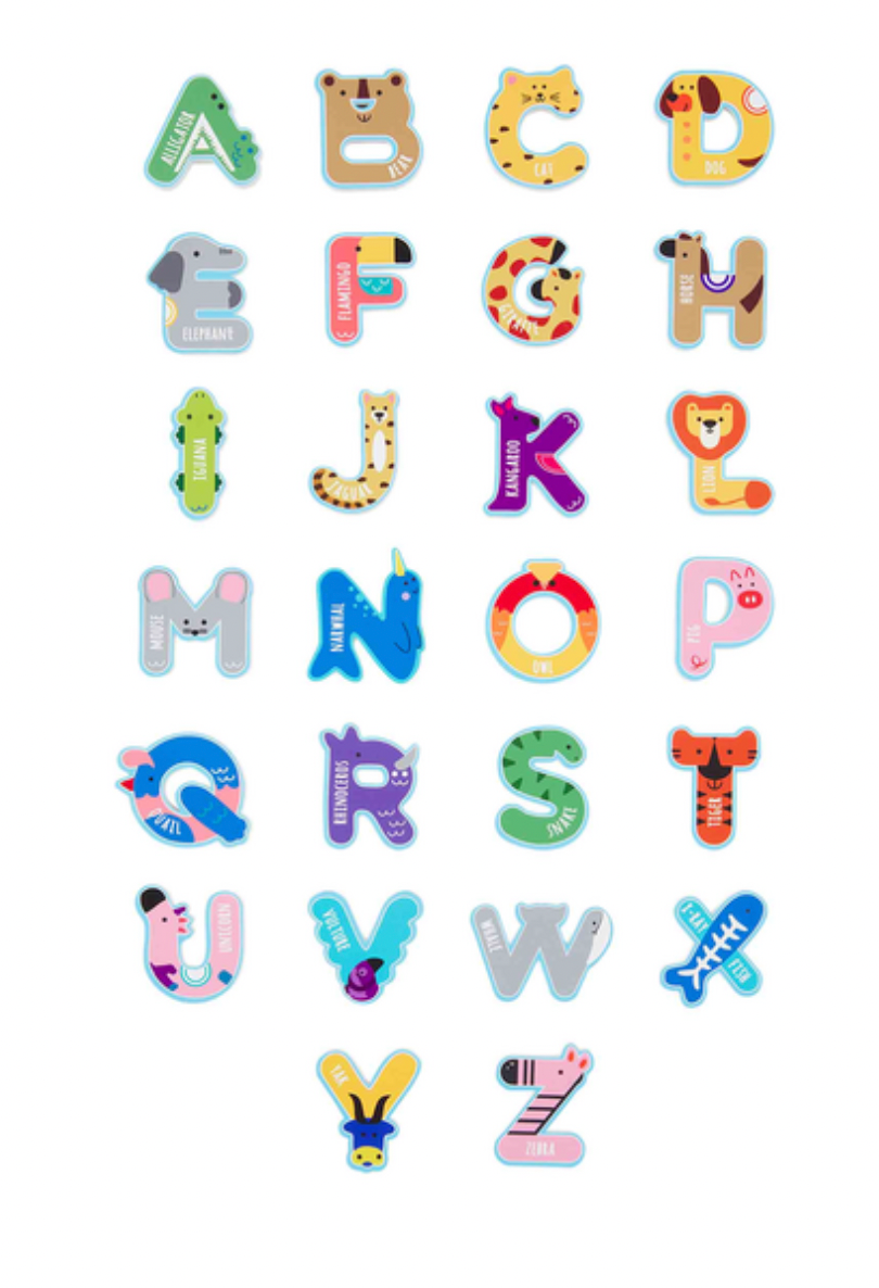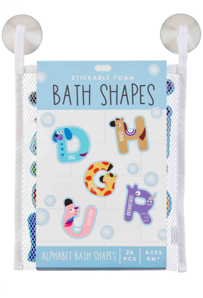 26-piece bath stickable foam shapes. Comes in mesh bag with suction cups.