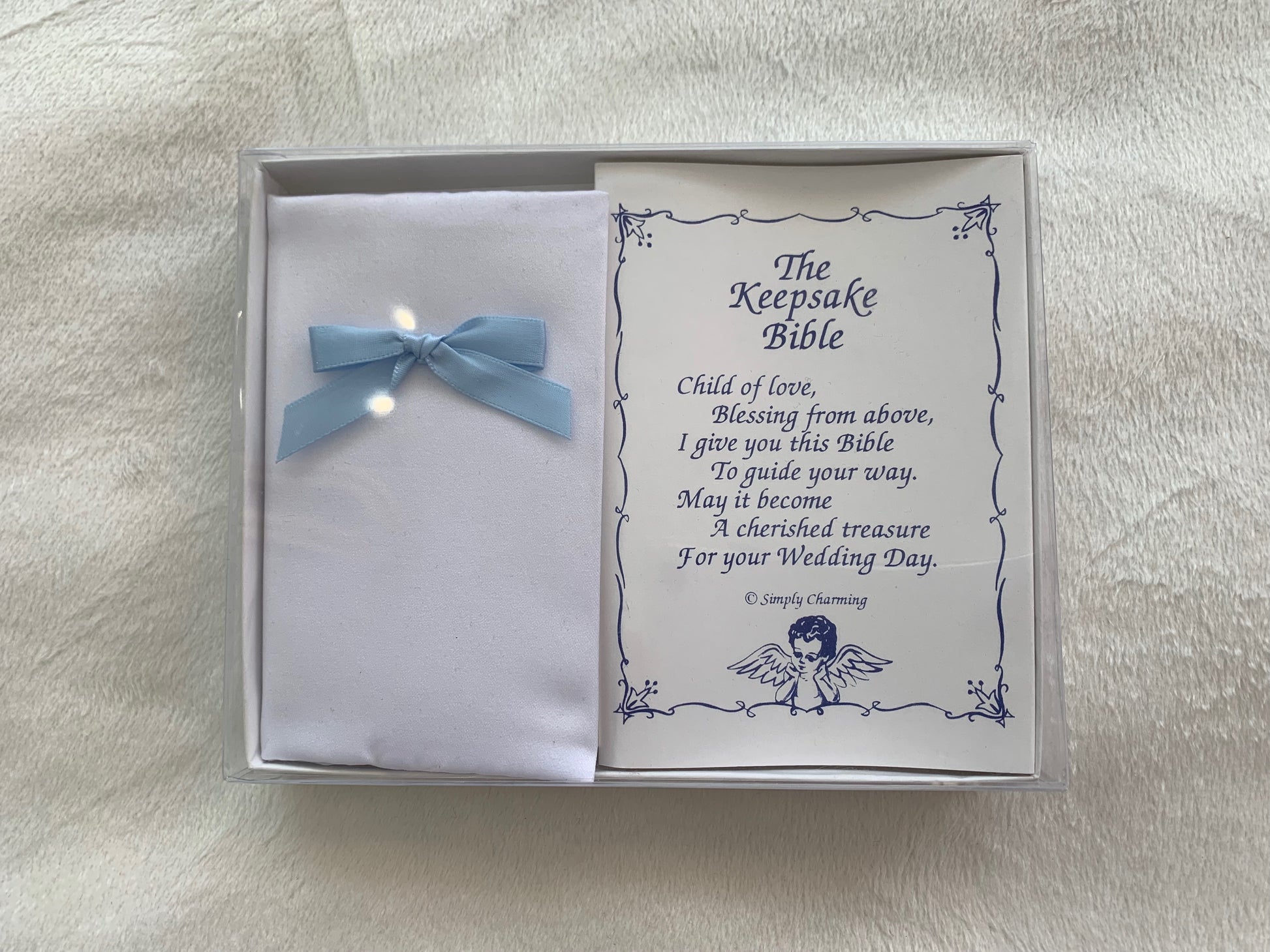 Simply Charming Satin Baby Bible w/ Blue Bow